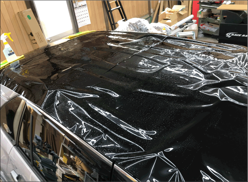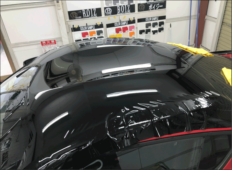90系スープラのルーフを施工した時の画像です。ダブルバブル形状のルーフにもしっかり追従できています。
