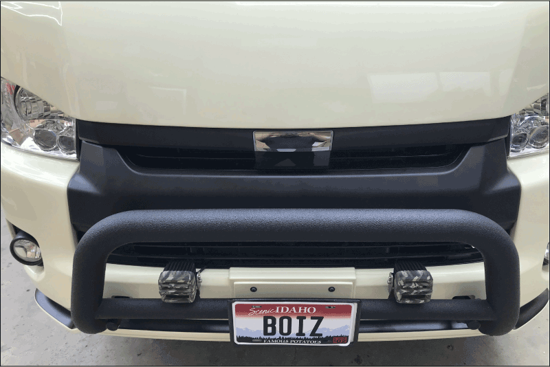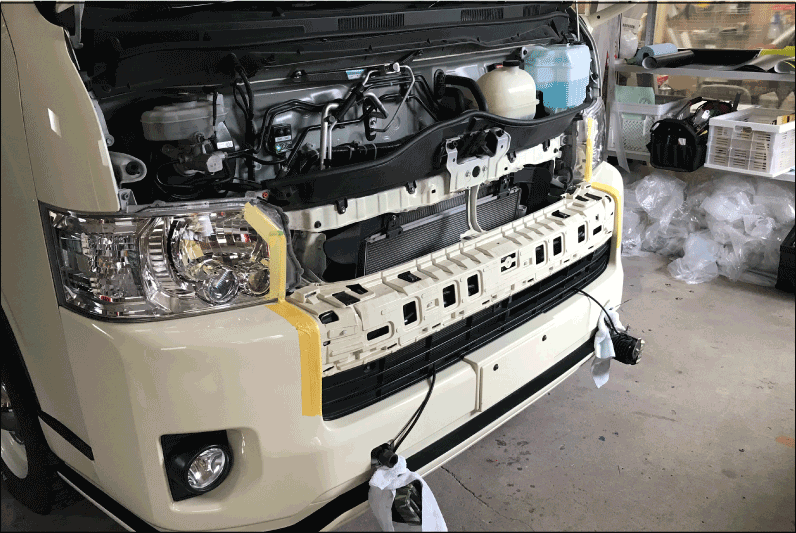 ハイエースのグリルは比較的簡単に取り外すことができます。今回は取り外して施工させていただきました。